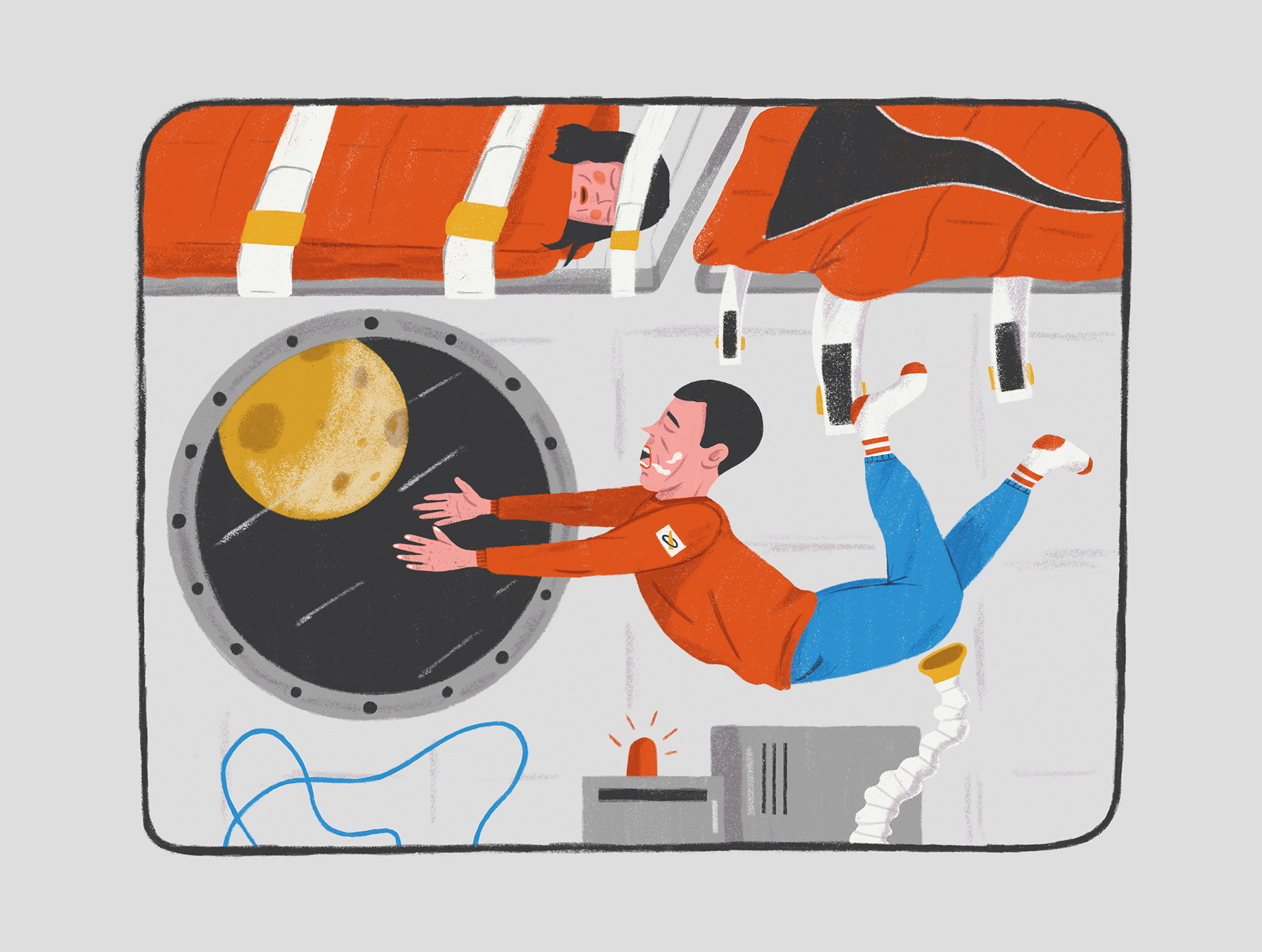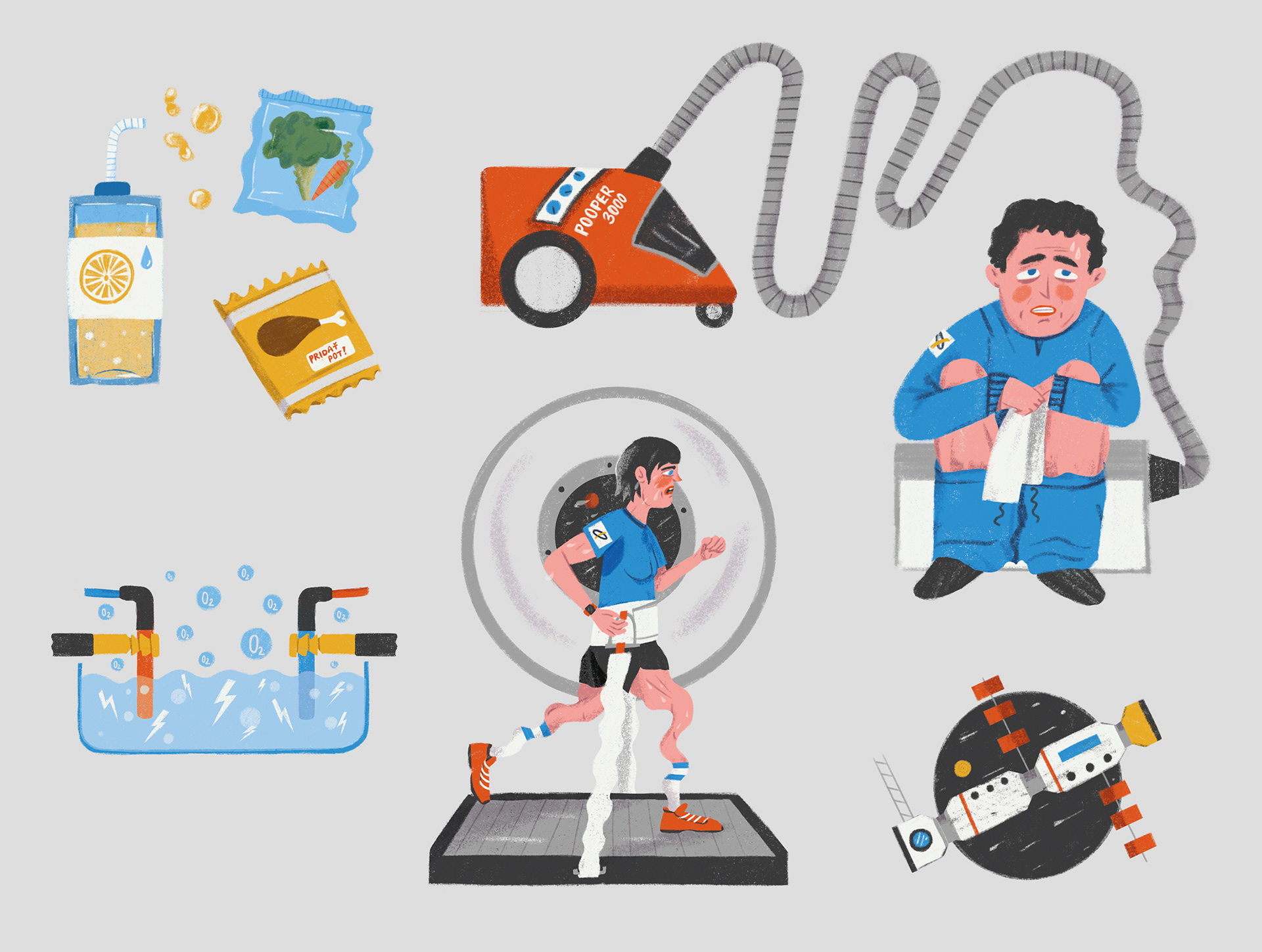 Ilustrácie do detského časopisu Bublina k článku o živote vo vesmírnej stanici.