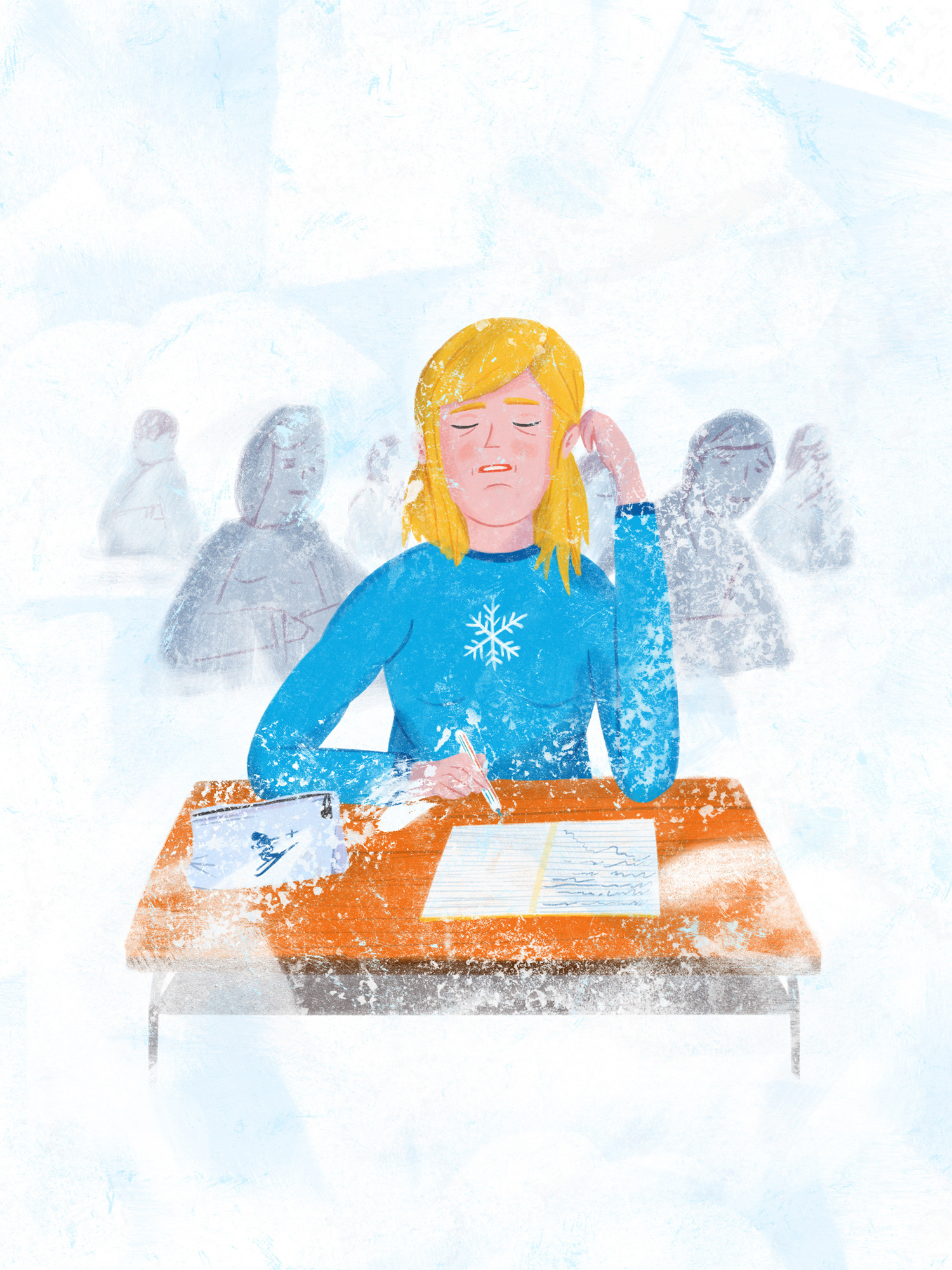 Veronika in front of the class talking about her dream of becoming a professional skier